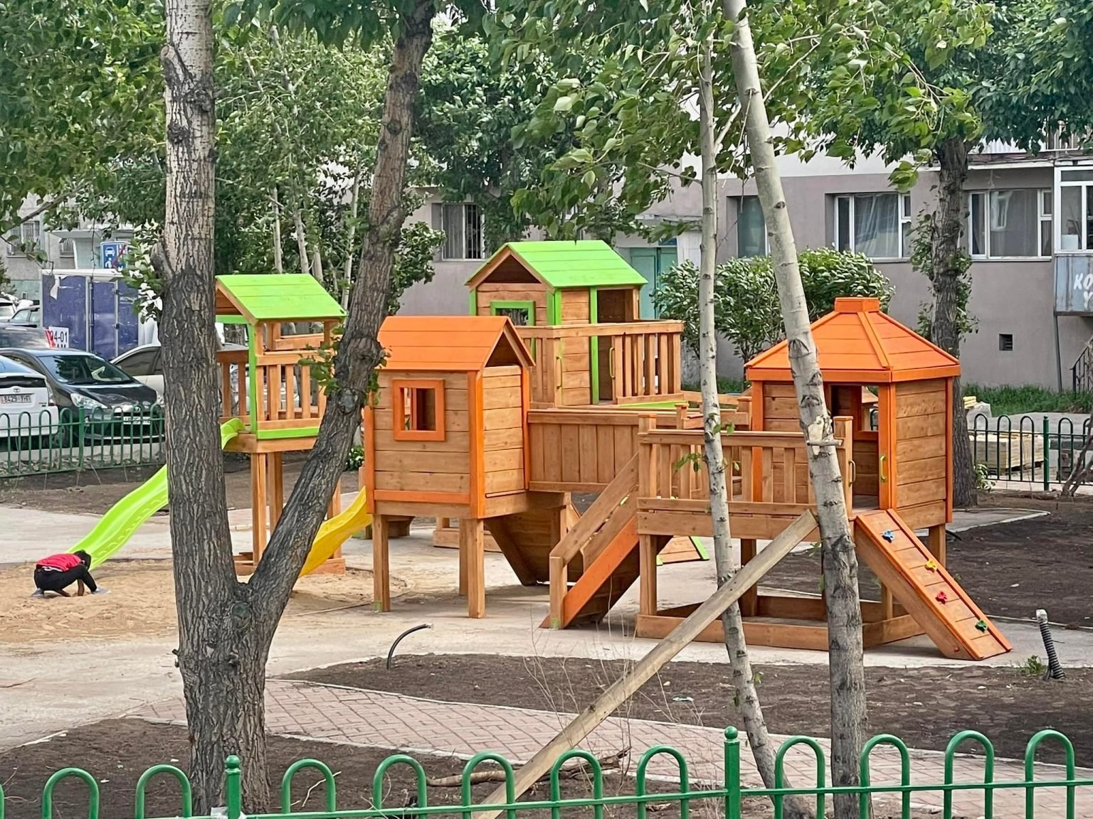 Хан-Уул дүүргийн Засаг даргын 2021-2024 оны “Эко-Эрүүл дүүрэг” хөтөлбөрийн хүрээнд дүүргийн төсвийн хөрөнгөөр 2 дугаар хорооны 7,8 дугаар байрны арын 7000 мкв талбайд хүүхдийн тоглоомын талбай, чийрэгжүүлэлтийн болон сагсан бөмбөгийн талбай, авто машины зогсоолтой, хөгжлийн бэрхшээлтэй иргэдэд зориулсан шат, явган хүний зам, гэрэлтүүлэг, камержуулалт зэрэг иж бүрэн тохижилттой “Ногоон байгууламжтай цэцэрлэгт хүрээлэн” тун удахгүй ашиглалтад орно.