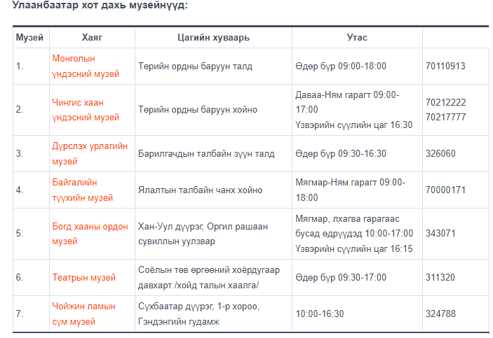 Гуравдугаар сарын эхний долоо хоногийг “Музейн нээлттэй өдөр” болгон зарладаг. Уламжлал ёсоор энэ сарын 1-5-ны өдрүүдэд улс даяарх төрийн болон орон нутгийн өмчит музей үнэ төлбөргүй, энгийн цагийн хуваарийн дагуу ажиллах юм байна.