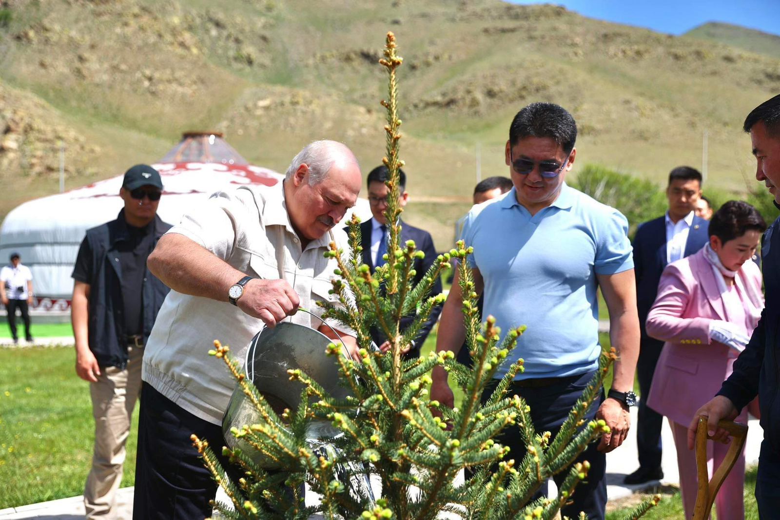Монгол Улсын Ерөнхийлөгч Ухнаагийн Хүрэлсүх, БНБУ-ын Ерөнхийлөгч А.Г.Лукашенко нар уур амьсгалын өөрчлөлт, цөлжилт зэрэг дэлхий нийтэд тулгамдаж буй сорилтыг даван туулах хүч чармайлтад хувь нэмрээ оруулахыг бэлгэдэж “Монгол соёлын парк” цогцолборт дурсгалын мод тарилаа.