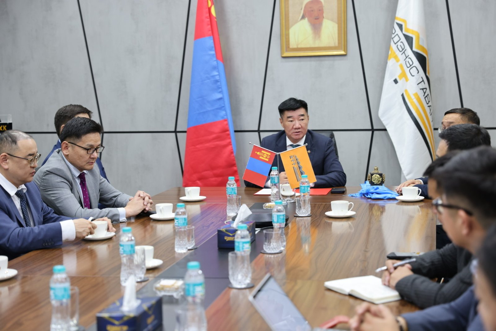 Бүрэн эрхт төлөөлөгчийн багийн ахлагч У.Бямбасүрэнд “Эрдэнэс Тавантолгой” ХК-ийн Гүйцэтгэх захирлын үүрэг гүйцэтгэгч Х.Мөнхжаргал компанийн тамга тэмдэг хүлээлгэн өгч баг хамт олонд амжилт хүслээ. Ажил хүлээлцэх арга хэмжээнд Засгийн газрын Хэрэг эрхлэх газрын дарга, Монгол Улсын сайд С.Бямбацогт тэргүүтэй Засгийн газрын Хэрэг эрхлэх газрын бүрэлдэхүүн хүрэлцэн ирсэн бөгөөд “Эрдэнэс Тавантолгой” ХК-ийн Гүйцэтгэх удирдлагын баг өнгөрсөн хугацаанд сайн ажилласныг онцлон тэмдэглээд цаашид улам эрчимжүүлэх шаардлагатай байгаа тухай танилцуулав.