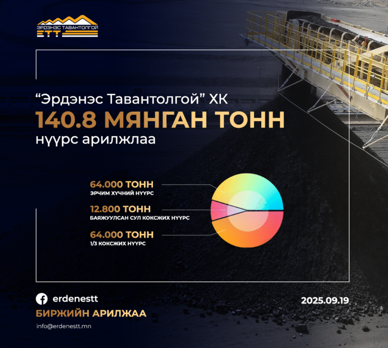 “ЭРДЭНЭС ТАВАНТОЛГОЙ” ХК 32.0 МЯНГАН ТОНН КОКСЖИХ НҮҮРС АРИЛЖЛАА