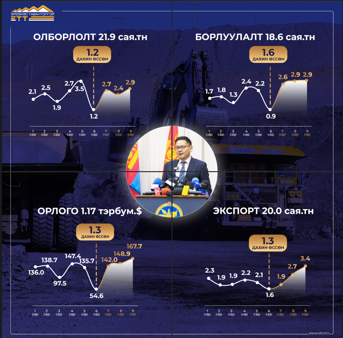 Түүнчлэн онцгой дэглэмийн хугацаанд нүүрсний экспортыг нэмэгдүүлж 2025 оны 07 дугаар сард 1.9 сая тонн, 08 дугаар сард 2.7 сая тонн, 09 дүгээр сард 3.2 сая тонн нүүрс Гашуунсухайт, Ханги боомтоор экспортоллоо. Есдүгээр сард экспортолсон нүүрсний хэмжээ “Эрдэнэс Тавантолгой” ХК-ийн бүх цаг үеийн хамгийн өндөр экспортын үзүүлэлт болсон нь онцгой дэглэмийн хугацаанд авч хэрэгжүүлсэн ажлын онцлох үр дүн байлаа.