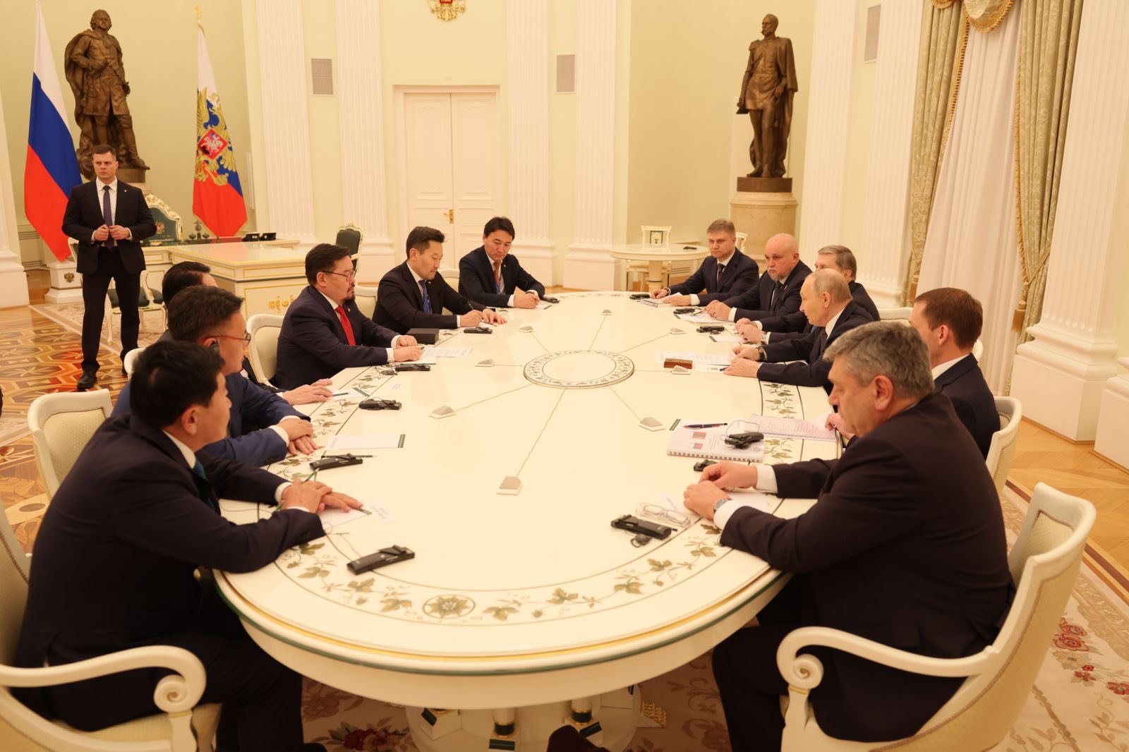Ерөнхий сайд Г.Занданшатар өнгөрсөн 9 дүгээр сард Дорнын эдийн засгийн 10 дугаар чуулга уулзалтад оролцох үеэрээ ОХУ-ын Ерөнхийлөгч В.В.Путинд бараалхсан бол мягмар гарагт (2025.11.18) ШХАБ-ын гишүүн орнуудын Засгийн газрын тэргүүн нарын зөвлөлийн өргөтгөсөн хуралдаанд оролцох үеэр дахин бараалхлаа.