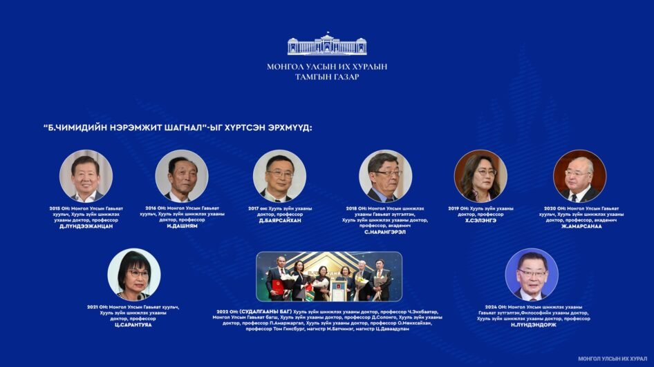 Ардчилсан Үндсэн хуулийн эхийг баригч, Монгол Улсын Хөдөлмөрийн баатар, Ардын багш, Гавьяат хуульч, доктор, профессор “Бяраагийн Чимидийн нэрэмжит шагнал”-ын 12 дахь удаагийн шалгаруулалтыг зохион байгуулахаар бэлтгэж байна.